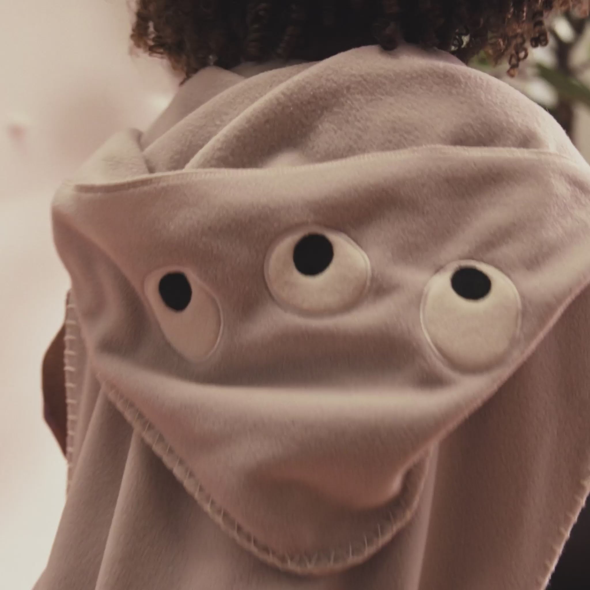 - Verspieltes Design: Die dezenten Farben und die drei Augen auf der Kapuze machen den Poncho zu einem echten Lieblingsstück in jedem Kinderzimmer.